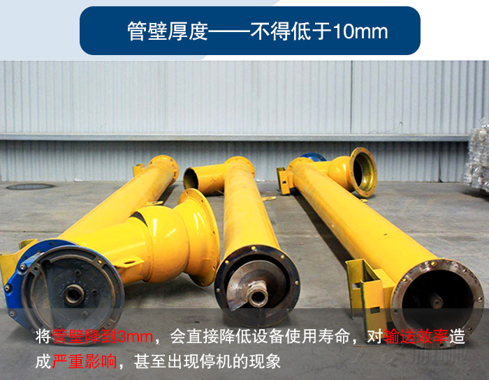 一般情況下,管式绿巨人黄色免费网站管壁厚度要求不低於10mm,有些廠家為了在其中賺取更多利益,將管壁降到了3mm,會直接降低設備使用壽命,對輸送效率造成嚴重影響,甚至出現停機的現象。