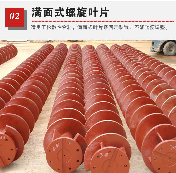 滿麵式螺旋葉片/實體螺旋葉片 滿麵式適用於鬆散性物料,滿麵式葉片係固定裝置,不能隨便調整。