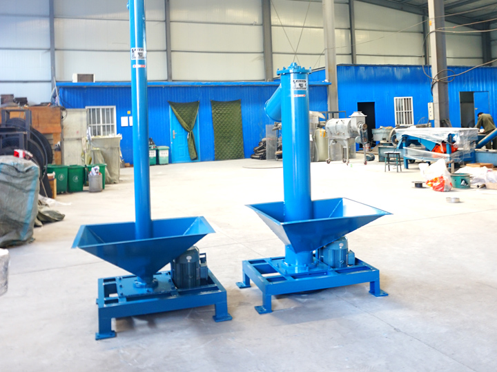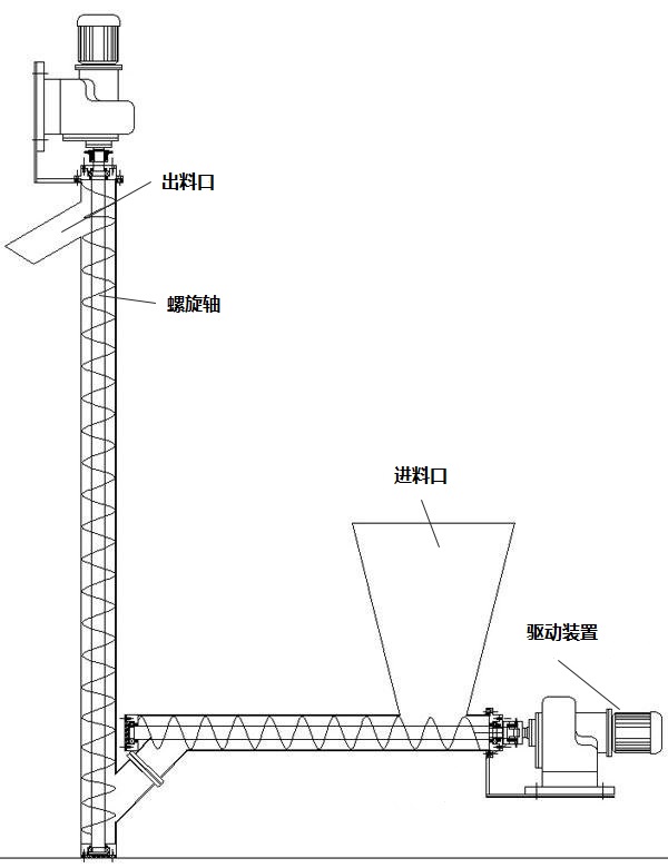 物料隨螺旋高速旋轉,被輸送的物料從水平部分的進料口加入,通過旋轉的水平進料螺旋送入輸送機和垂直部分,然後將物料向上推至出料口出料口由垂直螺旋,物料隨螺杆高速旋轉,被輸送的物料從水平部分的進料口加入,通過旋轉的水平進料螺旋進入輸送機。和垂直部分,然後用垂直螺旋將物料推到出料口排出。