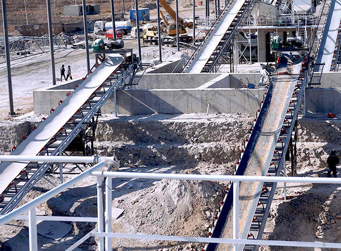 TDII型帶式輸送機的係列部件可滿足水平及傾斜輸送的要求也采用帶凸弧,凹弧段與直線段組合的輸送行駛。輸送機允許輸送的物料塊度取決於帶寬,帶速,槽角和傾角,也取決於大塊物料出現的頻率。各種帶寬適用的大塊度,本係列推薦按下列表選取。當輸送硬岩時,帶寬超過1200M後,一般應限製在35MM,而不能隨寬的增長而加大。