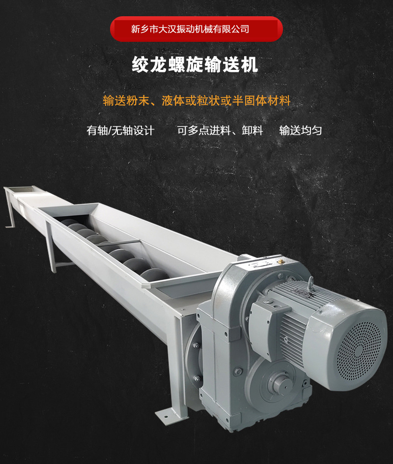 除此以外,絞龍輸送機還可根據輸送物料的性質選擇碳鋼、不鏽鋼材質,也可設計為雙軸或多種形式。