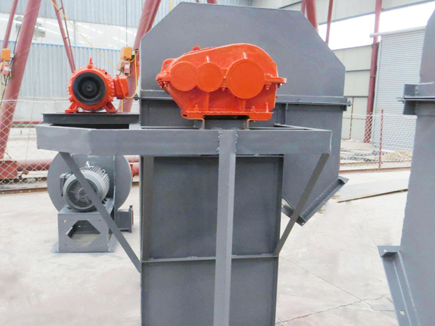 料鬥在傳動鏈條上均勻分布,傳動板鏈就像長龍相似盤旋在鬥式提升機機頭和機尾旋轉滾筒上,由於電機的驅動利用減速機、聯軸器傳動滾筒轉動皮條或鏈條循環轉動,在循環轉動時上麵分布的料鬥走到底部料倉出料口時,把物料吸入料鬥,轉身去往上出料口,把物料吐入出料倉,料鬥交替循環吸料吐料把物料輸送完。