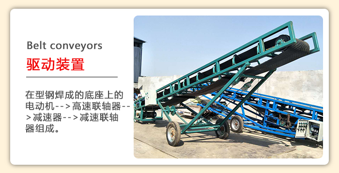 1.驅動部分:係由裝置在型鋼焊成的底座上的電動機-->高速聯軸器-->減速器-->減速聯軸器組成。根據布置要求:驅動裝置設有左裝和右裝兩種,另外本公司配有功率1.5KW到13KW,速度0.80、1.0、1.25的油冷式電動滾筒。