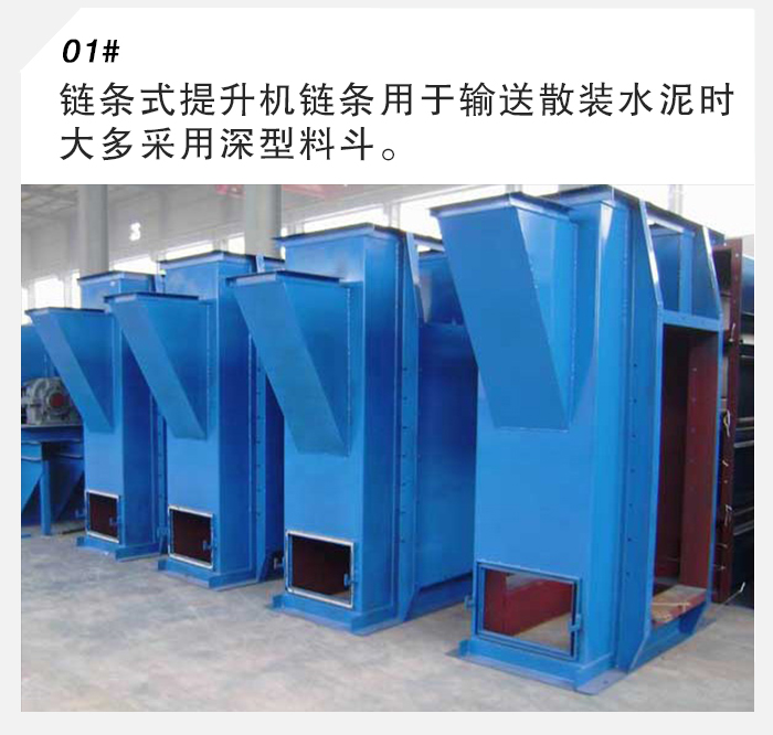 簡介:鏈條式提升機鏈條用於輸送散裝水泥時大多采用深型料鬥