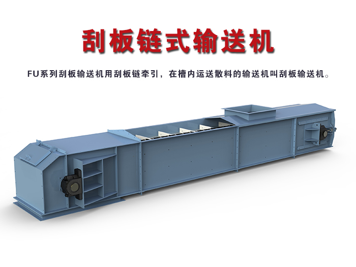 刮板鏈式輸送機,FU型鏈式輸送機常用於水平或傾斜(≤15°)輸送粉狀、粒狀物料的產品,廣泛用於建材、建築、化工、火電、糧食、礦山、機械、冶煉、交通、港口和運輸等行業。