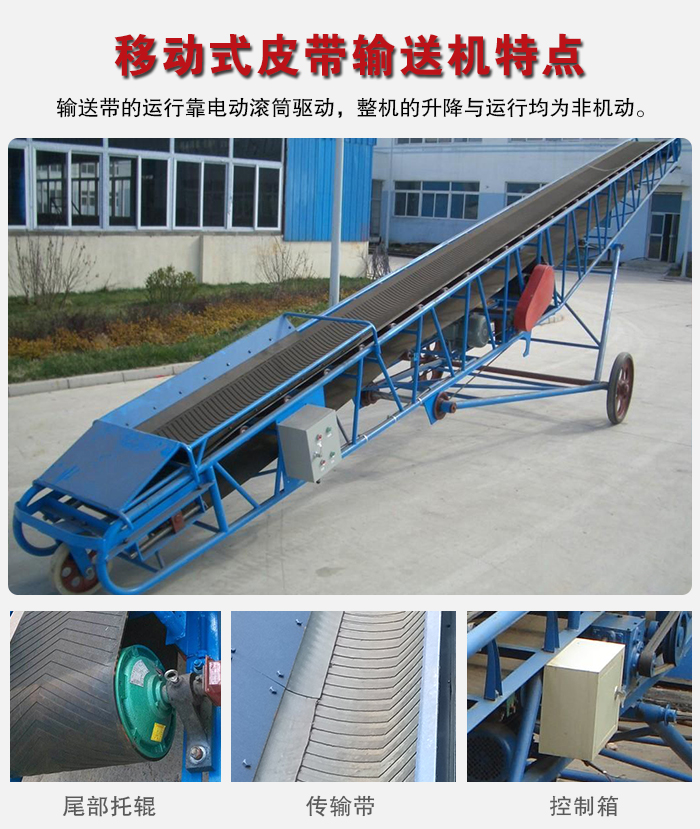 簡介:移動式皮帶輸送機是一種工效高,使用安全可靠,機動性好的連續輸送裝卸設備。