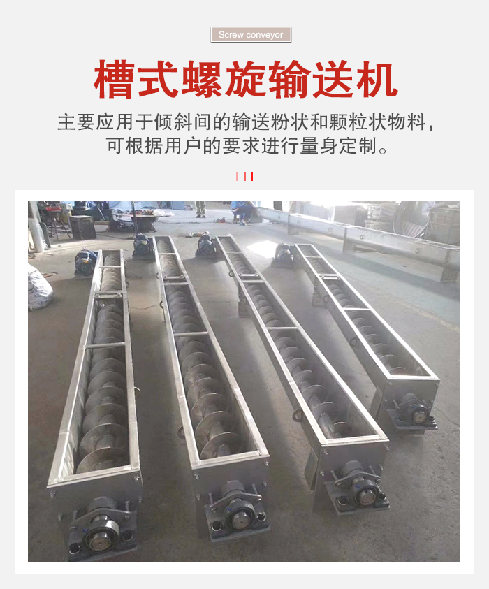 槽式绿巨人黄色免费网站又稱螺旋給料機,主要應用於傾斜間的輸送粉狀和顆粒狀物料,可根據用戶的要求定製成不同直徑,不同長度,不同傾斜度,並可配套安裝調速電機,已連續的調節轉速,達到定量給料的目的。
