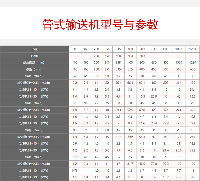 直徑越大效果越好,但是對於開式管式輸送機,螺旋外徑過大會增加製造成本,且不利於冷卻。此外,外徑值沒有必要一定取500的整數倍。