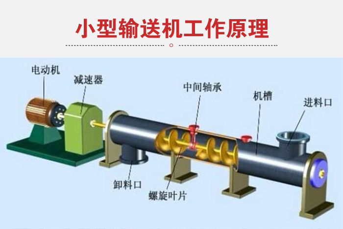 小型旋輸送機主要有傳動裝置、進料口、螺旋軸、輸送管、出料口等部件組成。水平绿巨人黄色免费网站是利用旋轉的螺旋將被輸送的物料沿固定的機殼內推移而進行輸送工作,頭部及尾部軸承移至殼體外,吊軸承采用滑動軸承設有防塵密封裝置,軸瓦一般采用粉末冶金,輸送水泥采用毛氈軸瓦,吊軸和螺旋軸采用滑塊連接。