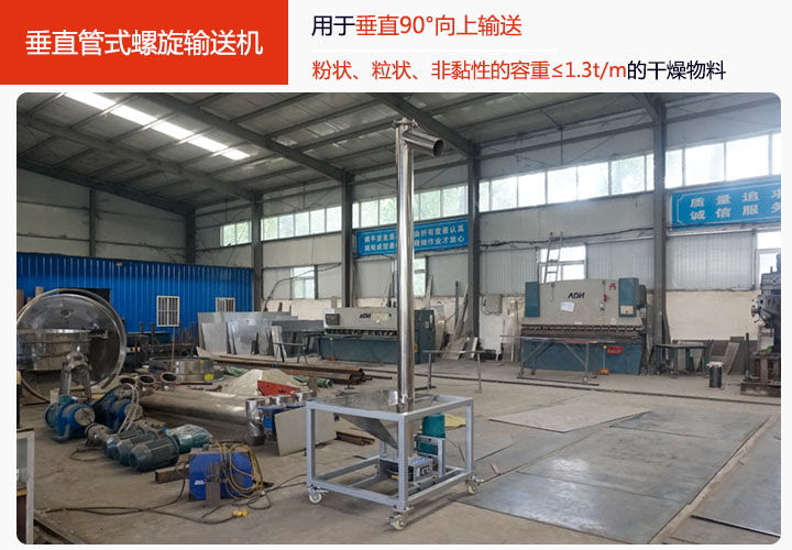 垂直管式绿巨人黄色免费网站適合垂直90°向上輸送物料,能輸送粉狀、粒狀、非黏性的容重≤1.3t/m的幹燥物料。垂直管式绿巨人黄色免费网站的輸送過程依靠的是物料與機殼之間的摩擦力進行物料的輸送,進料口到出料口之間的距離從2.5米起到15米止,0.5米為一檔,用戶可根據需要選用,绿巨人污APP在线下载垂直管式绿巨人黄色免费网站材質分為兩種:碳鋼與不鏽鋼,碳鋼的比較適用於一般的物料的提升,不鏽鋼材質的主要用於食品行業與化工行業的使用。