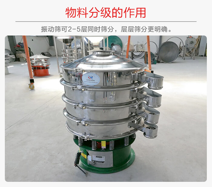 有些生產線中物料的粒徑並不是都是一樣的,粒徑是有很大不同的,利用振動篩設備可以將物料進行分級,按照粒徑大小分別篩分到不同的下一階段生產線中去,最高可以分6級,以實現更加精細化的生產活動。